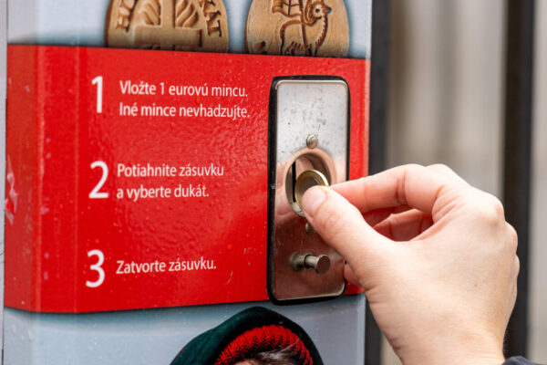 V centre Trenčína sa nachádzajú automaty na hlinené dukáty. Po vhodení 1 eura získate hlinený dukát, ktorý môžete darovať človeku bez domova.
