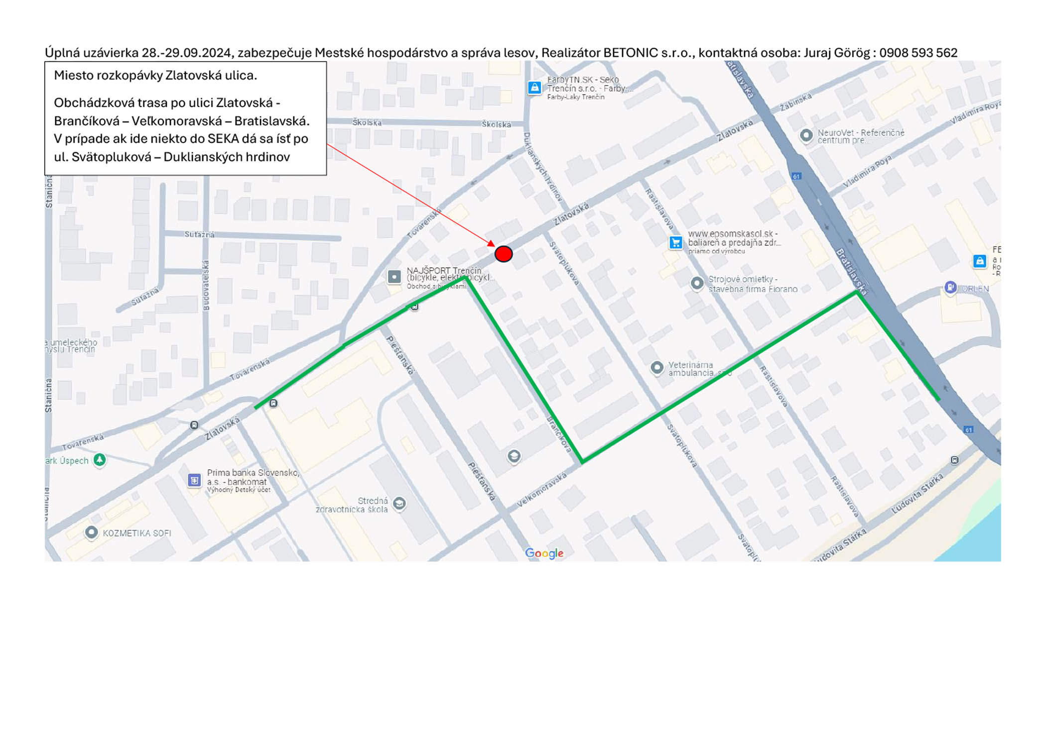 Úplna uzávierka časti ul. Zlatovská investor MHSL
