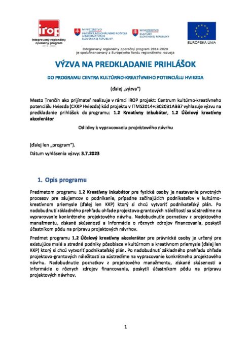Výzva na predkladanie prihlášok