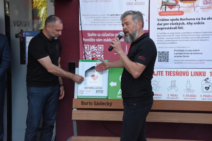 „Najskôr chcem poďakovať Slovenskému zväzu ľadového hokeja, že každú sezónu je jedno extraligové kolo na konci septembra venované našej neziskovej organizácii. Ďakujem aj spoločnosti MMCité a tiež mestu Trenčín, ktoré s umiestnením lavičky súhlasilo. Sme veľmi radi, že pred zimným štadiónom, na verejne prístupnom mieste, len 30 metrov od cyklotrasy, ktorá je veľmi využívaná športovcami v Trenčíne, je v prípade potreby kedykoľvek k dispozícii defibrilátor,“ povedal chvíľu pred odhalením lavičky otec Borisa Sádeckého, František.