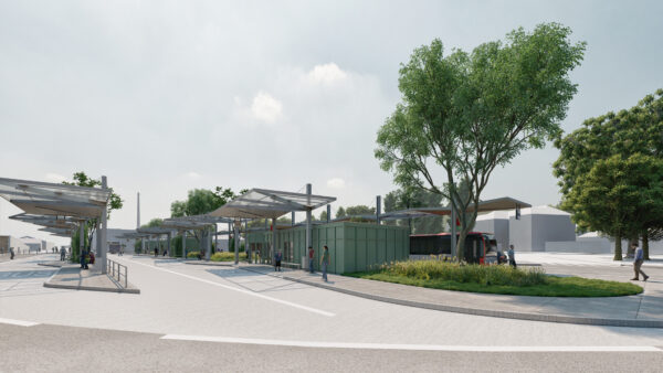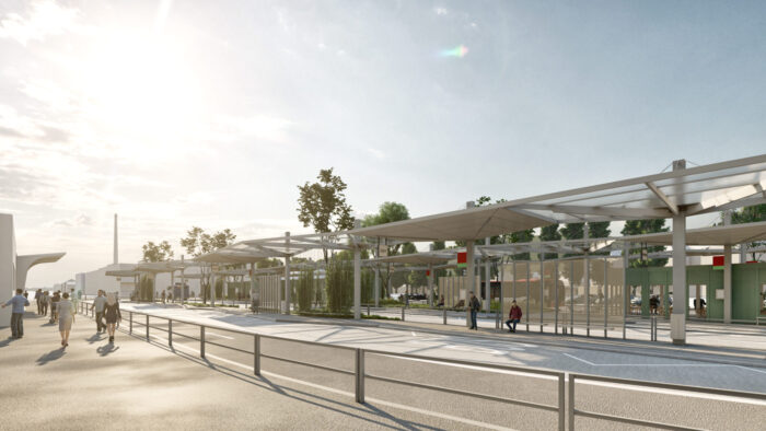 Priestor autobusovej stanice doplnia tri objekty s administratívou a rýchlym občerstvením. Vjazd autobusov do stanice bude z ulice Kragujevských hrdinov a výjazd bude na Železničnú ulicu.