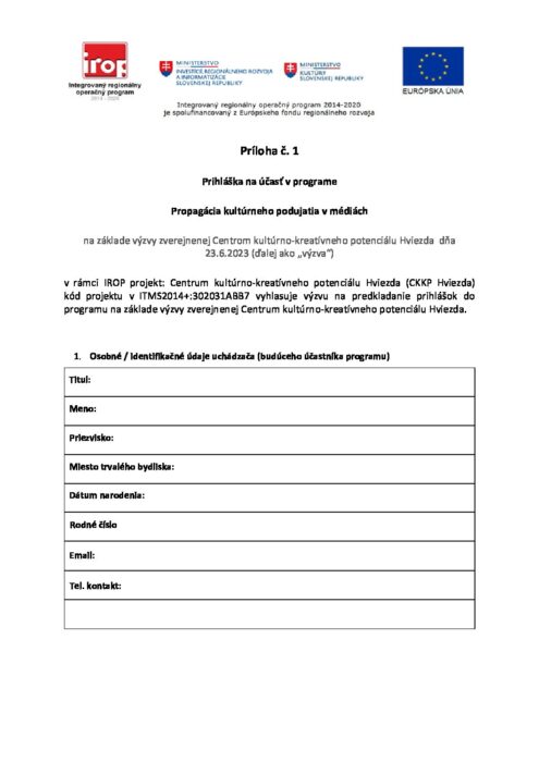 Príloha č.1 Prihláška na účasť v programe