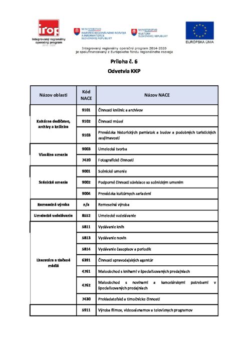 Príloha č.6 Odvetvia KKP