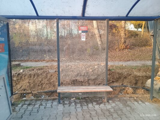 Prístrešok na autobusovej zastávke Lavičková, smer centrum sa uzatvorí. Nie je bezpečný. Pre ochranu zdravia vás prosíme, aby ste ho nevyužívali.