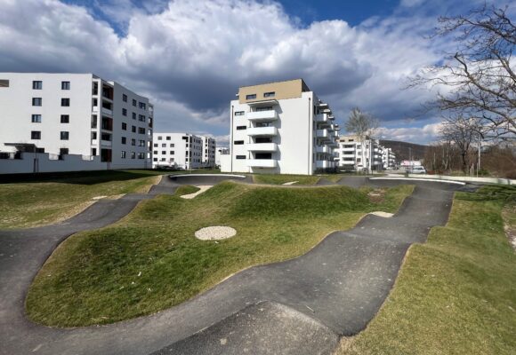 V mestskej časti Zlatovce, v novej rezidenčnej štvrti Vinohrady, sme vybudovali ďalší pumptrack v Trenčíne. Dnes ho otvorila súťaž mladších aj starších detí. Za spoluprácu ďakujeme Rezidencii Vinohrady a ORIGOS.