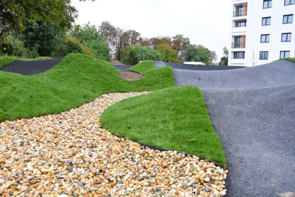 Pumptracková dráha ponúka hlavný okruh s piatimi naklopenými zákrutami a 18 vlnami s možnosťou generovania rýchlosti. Profil dráhy je nízky až stredne vysoký, vhodný pre široké spektrum jazdcov. Hlavný okruh dopĺňa paralelná línia s dvoma skokmi stredného profilu pre zvýšenie atraktivity dráhy.