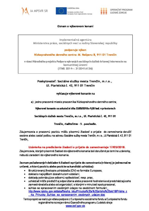 výberové konanie pracovník NDC