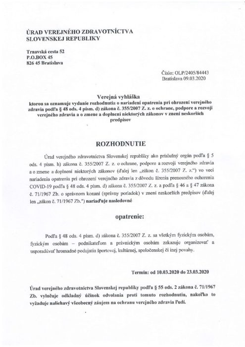 Verejná vyhláška_rozhodnutie_zákaz hromadných podujatí