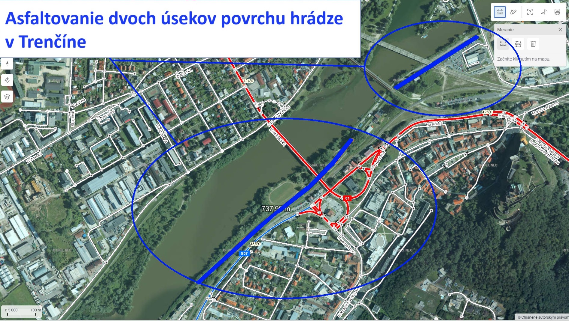 Situácia- asfaltovanie dvoch úsekov hrádze v Trenčíne