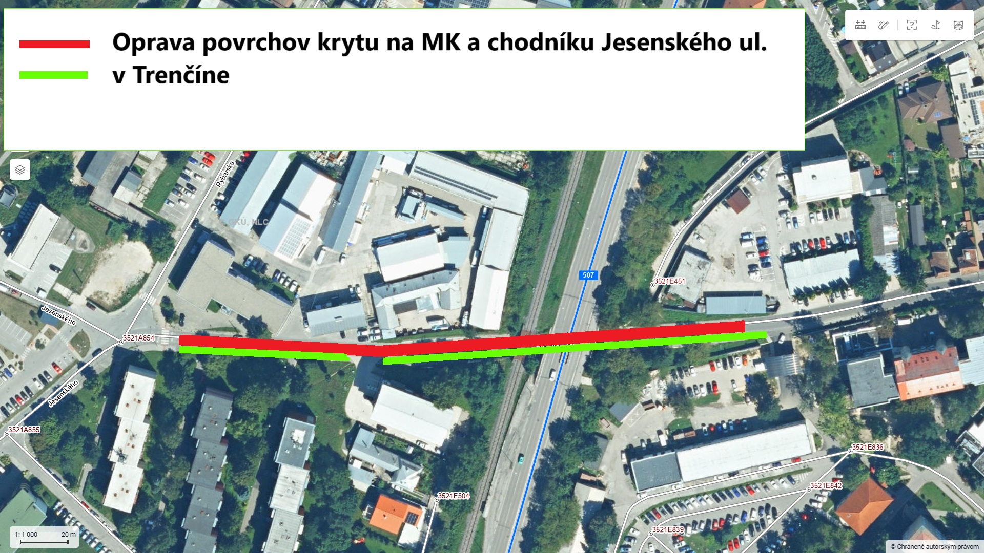 Situácia- MK a chodník Jesenského ul.