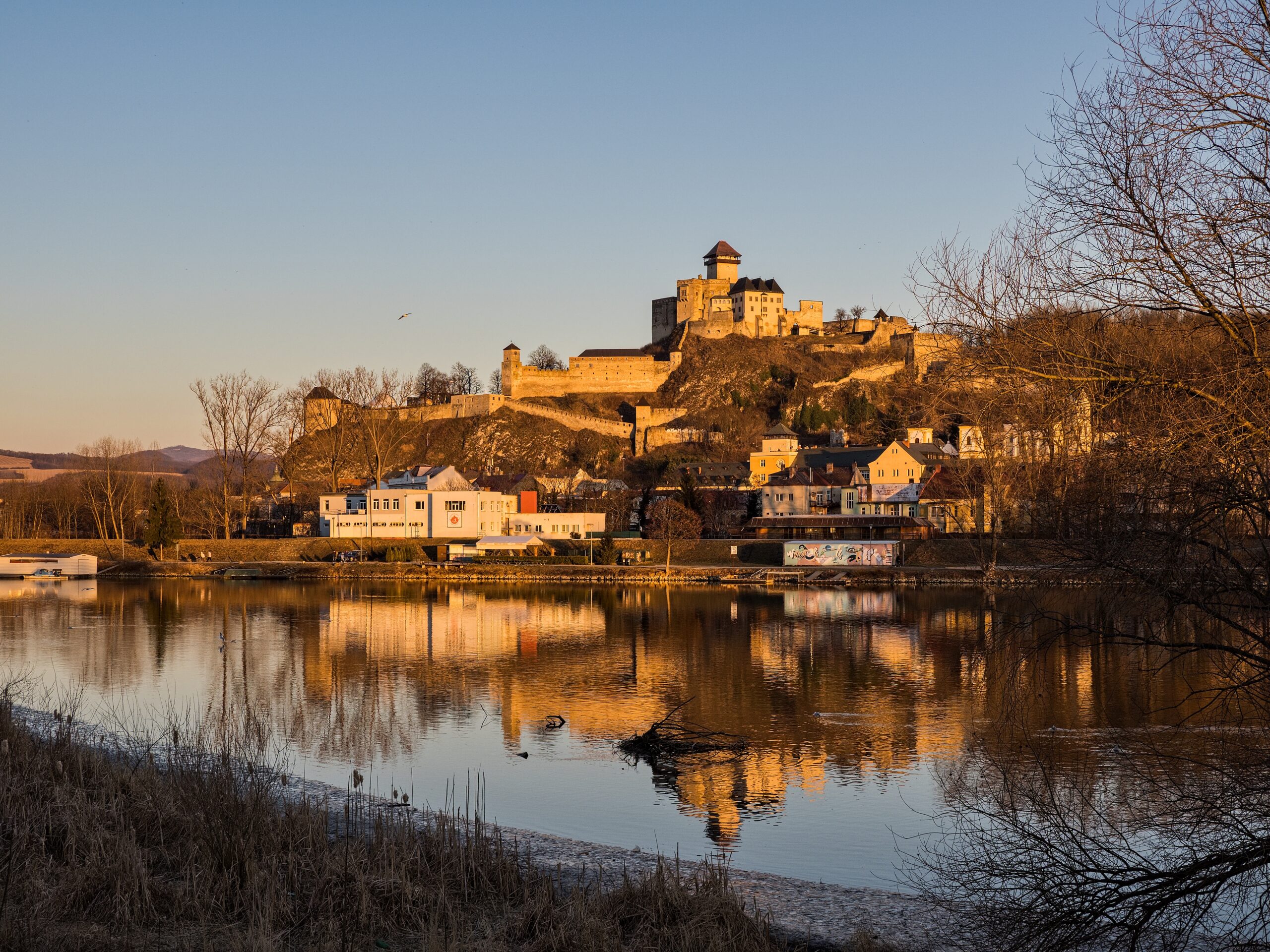 Hrad v odraze rieky v zime foto Juraj Majerský