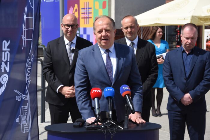 „Veľmi sa teším, že dnes po mnohých útrapách a strastiach môžeme oznámiť začiatok rekonštrukcie tejto železničnej stanice. Musím povedať, že veľmi intenzívne na tom pracovali aj pán primátor, aj pán viceprimátor Ján Forgáč, ktorý chodil toľkokrát na ministerstvo a riešil, komunikoval, spolupracoval. Bojovali sme s ťažkými povoľovacími procesmi, a to aj na ministerstve životného prostredia. Dnes sa ale veľmi teším, že máme udelené všetky potrebné povolenia a že zhotoviteľ môže začať pre investora, Železnice Slovenskej republiky, túto stavbu realizovať. Takže, už len mi zostáva zaželať veľa šťastia zhotoviteľovi a prianie, aby sa zmestil do vysúťaženej sumy a do zmluvne určeného termínu lehoty výstavy,“ povedal J. Ráž.