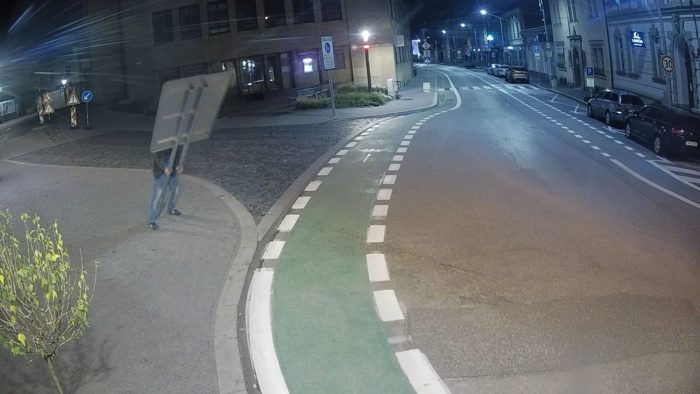 V sobotu 23. októbra 2021 o 4:36 h kontaktoval stálu službu mestskej polície pracovník hotela Elizabeth, že na Palackého ulici jedna staršia osoba zlomila dopravnú značku „koniec Pešej zóny“. Malo k tomu dôjsť po tom, ako ňou knísala až došlo k zlomeniu 2 oporných stĺpikov a k padnutiu dopravnej značky na zem. Následne osoba odišla smerom do Parku gen. M. R. Štefánika. Kamerový systém mestskej polície zaznamenal pri čine muža, ktorého podrobný popis dostali viaceré hliadky.