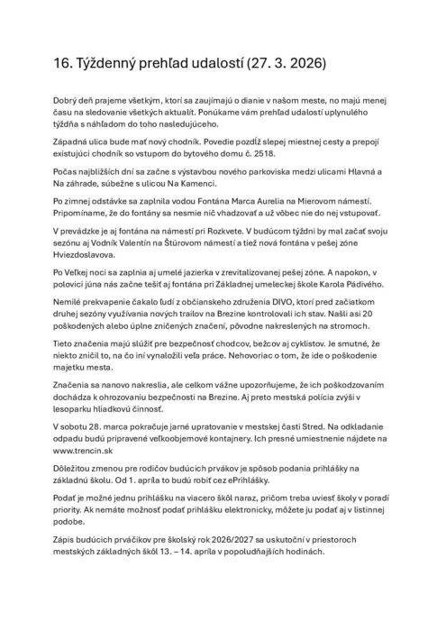 16. Týždenný prehľad udalostí (27. 3. 2026)