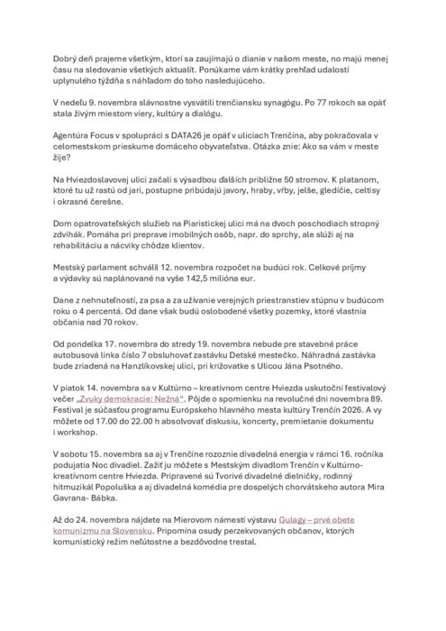 Týždenný prehľad udalostí v našom meste 14. 11. 2025