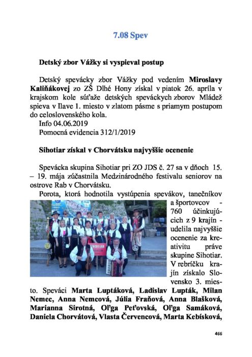 Rok 2019 – 7.08 Spev