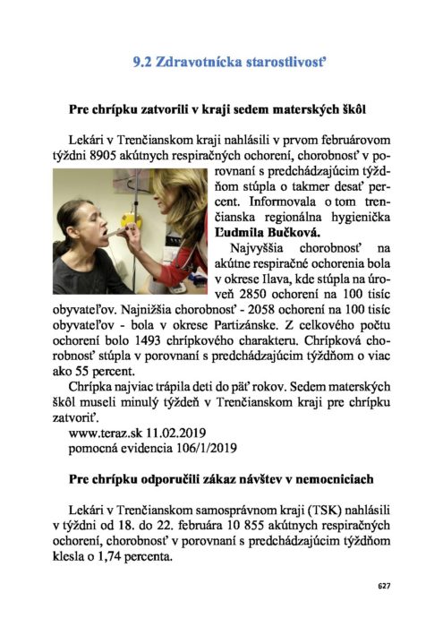 Rok 2019 – 9.2 Zdravotnícka starostlivosť