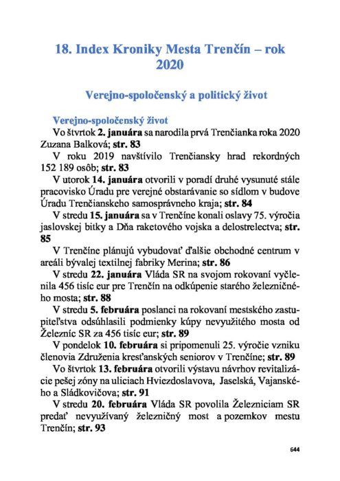 Hlavná stránka > Pre občanov > O meste > Kronika mesta > Rok 2020 – 18. Index Kroniky Mesta Trenčín 2020
