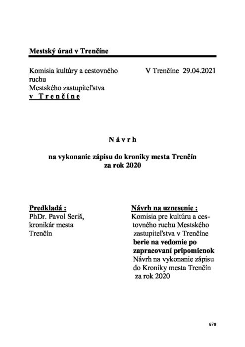Hlavná stránka > Pre občanov > O meste > Kronika mesta > Rok 2020 – 21. Správa o zápise kroniky 2020
