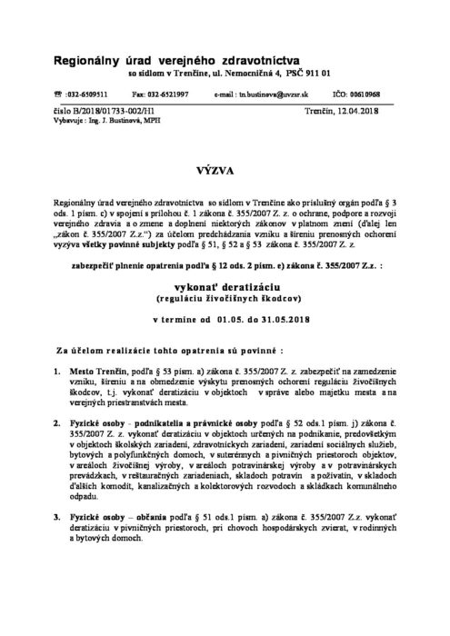 Hlavná stránka > Pre občanov > Odpady a životné prostredie > Deratizácia > Výzva deratizácia RÚVZ – jar 2018
