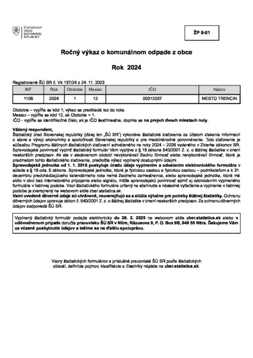 Hlavná stránka > Pre občanov > Odpady a životné prostredie > Odpady > Ročný výkaz o komunálnom odpade z obce 2024