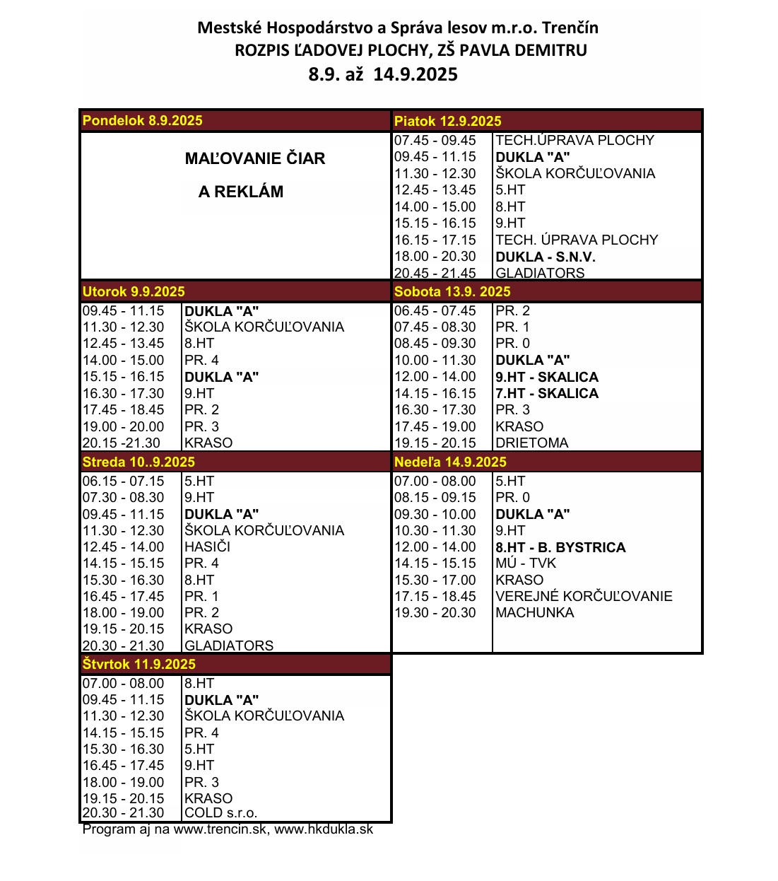 rozpis ladu