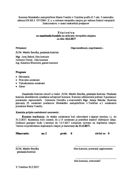 Zápisnica zo zasadnutia – 10.05.2017