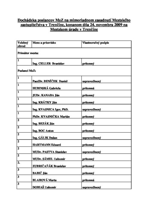 Mestské zastupiteľstvo zo dňa 24. 11. 2009