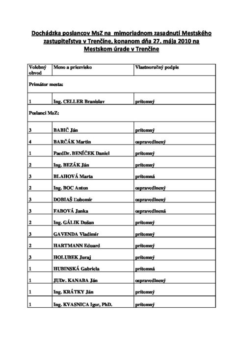 Mestské zastupiteľstvo zo dňa 27. 05. 2010