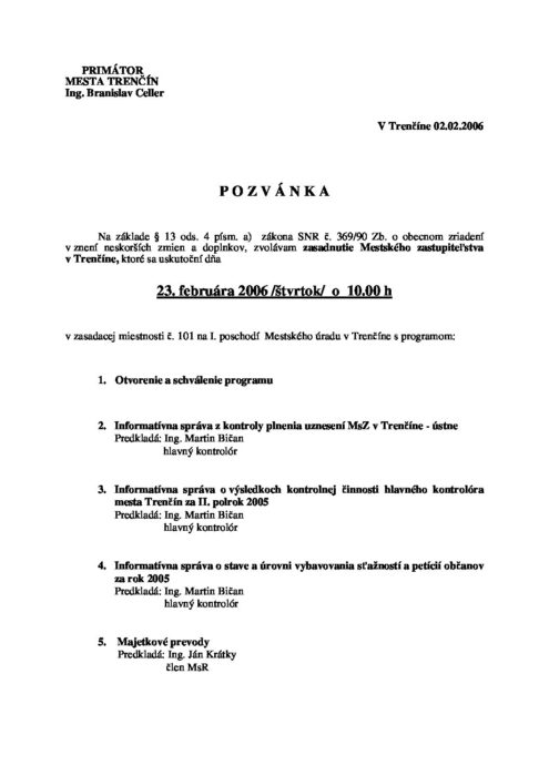 Pozvánka na MsZ 23. 2. 2006
