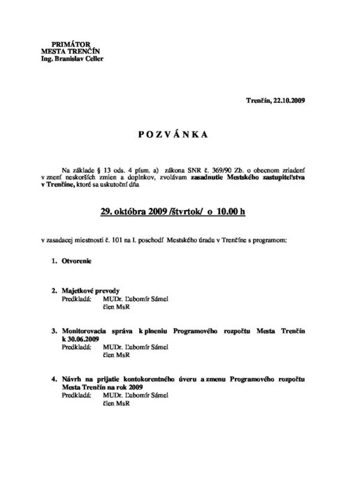 Pozvánka na MsZ 29. 10. 2009