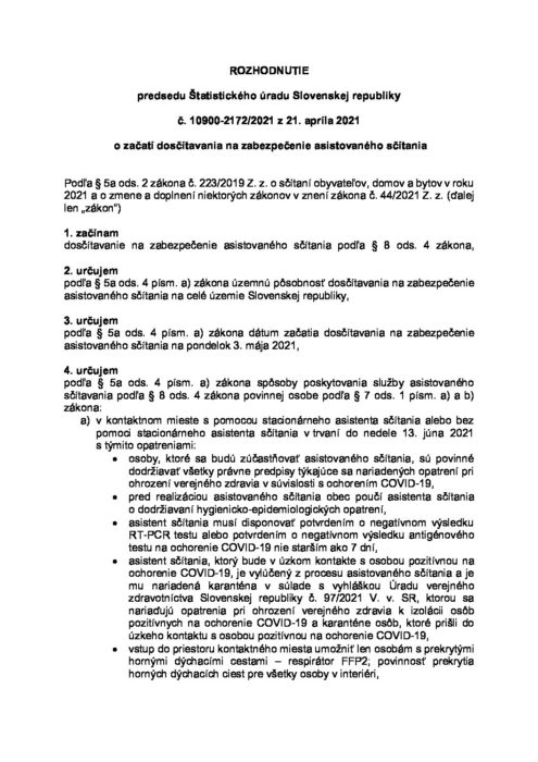 Hlavná stránka > Samospráva > Sčítanie > Sčítanie obyvateľov 2021 > Rozhodnutie predsedu ŠÚ SR o začatí dosčítavania