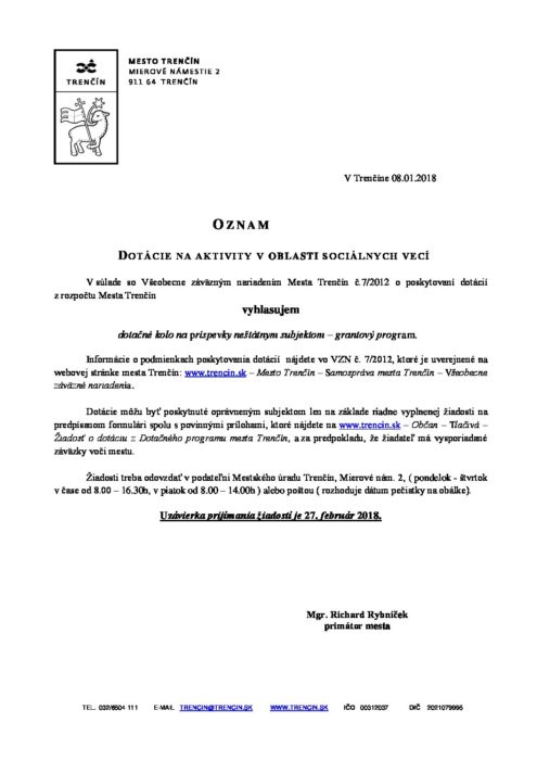 Výzva – dotácie na aktivity v oblasti sociálnych vecí