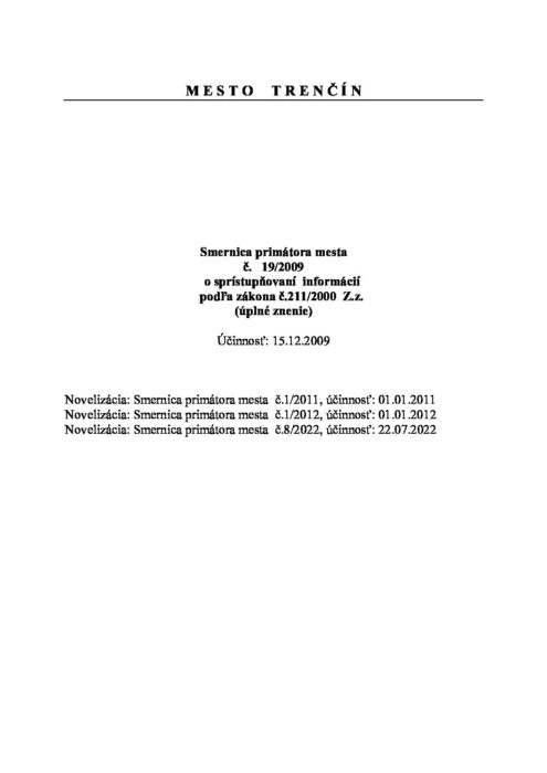 Smernica primátora mesta č.19_2009 o sprístupňovaní informácií podľa zákona č.211_2000 Z.z. – úplné znenie