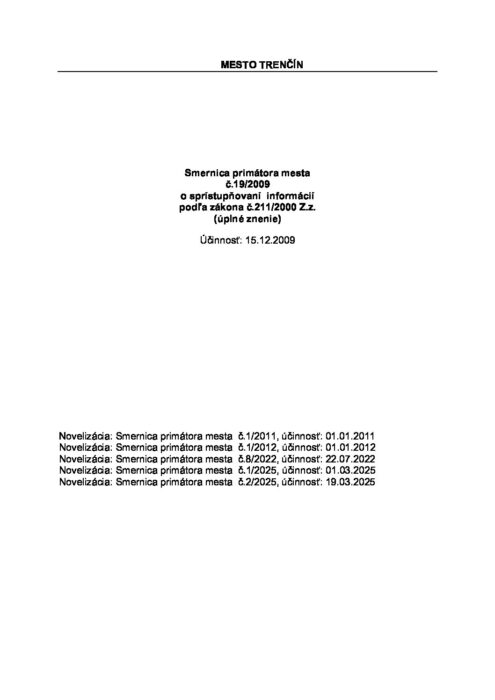 Smernica primátora mesta č.19/2009 o sprístupňovaní informácií podľa zákona č.211/2000 Z.z._úplné znenie_19032025