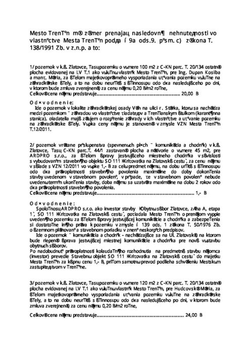 HOZ prenájom nehnuteľnosti vo vlastníctve Mesta Trenčín