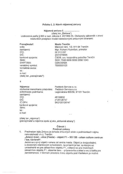 Návrh nájomnej zmluvy