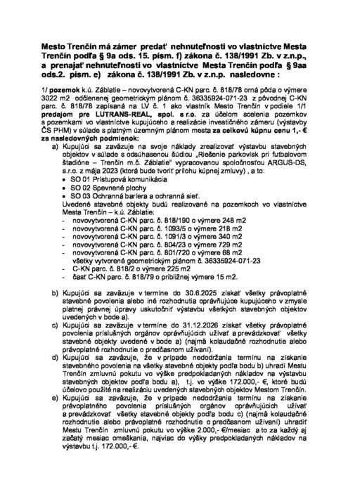 Oznámenie o zámere predať a prenajať majetok – Lutrans