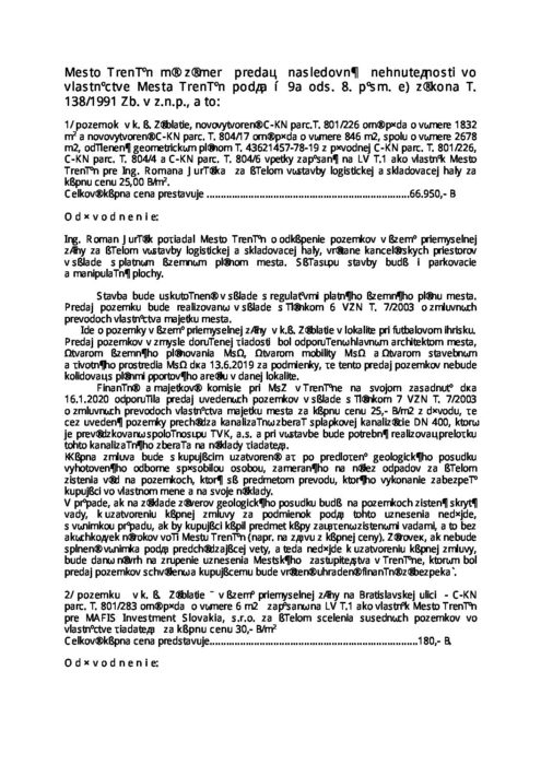 Oznámenie o zámere predať nehnuteľný majetok