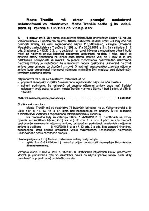 Hlavná stránka > Samospráva > Transparentný Trenčín > Predaj a prenájom majetku > Oznámenie o zámere prenajať byty