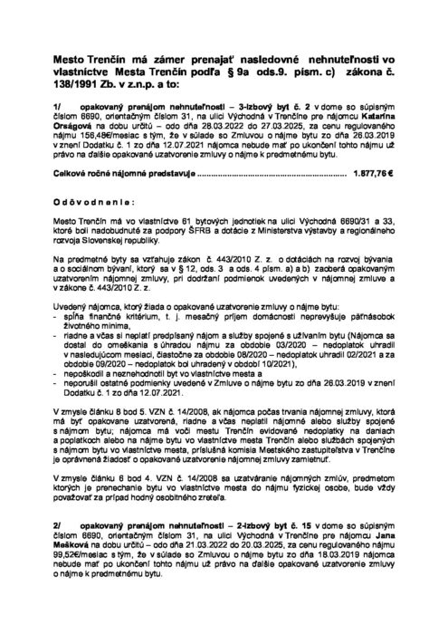 Oznámenie o zámere prenajať byty