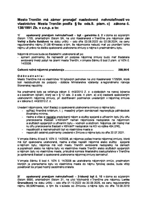 Oznámenie o zámere prenajať byty vo vlastníctve mesta