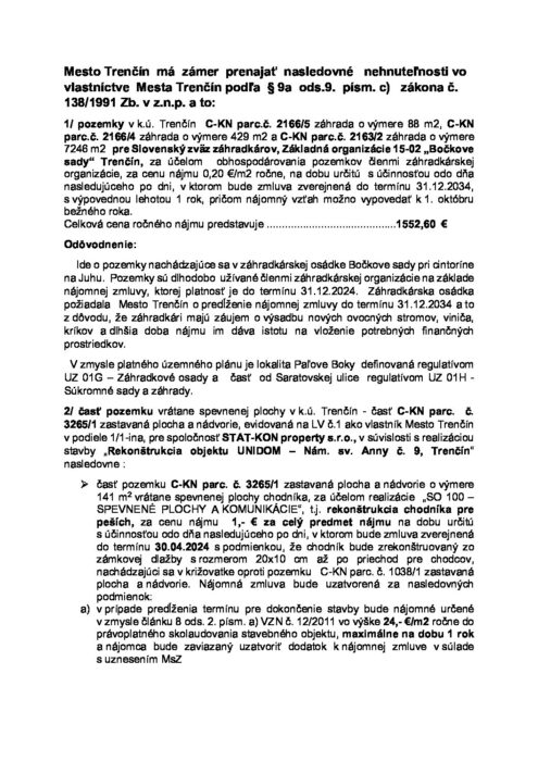 Oznámenie o zámere prenajať nehnuteľný majetok