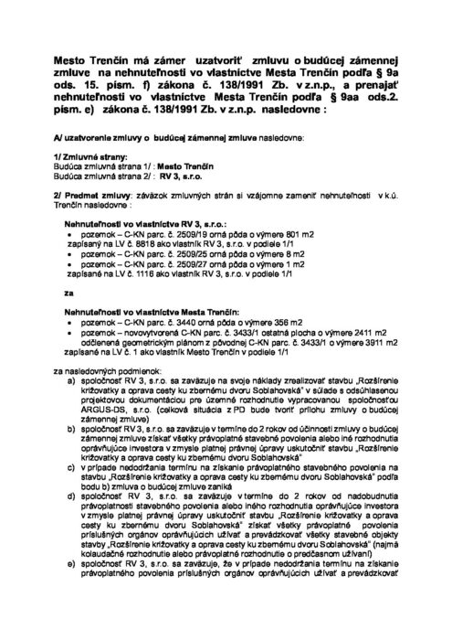 Oznámenie o zámere uzatvoriť budúcu zámennú zmluvu