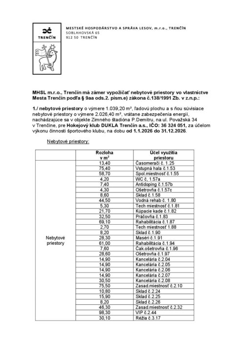 Oznámenie o zámere vypožičať nebytové priestory_ZŠ P.Demitru