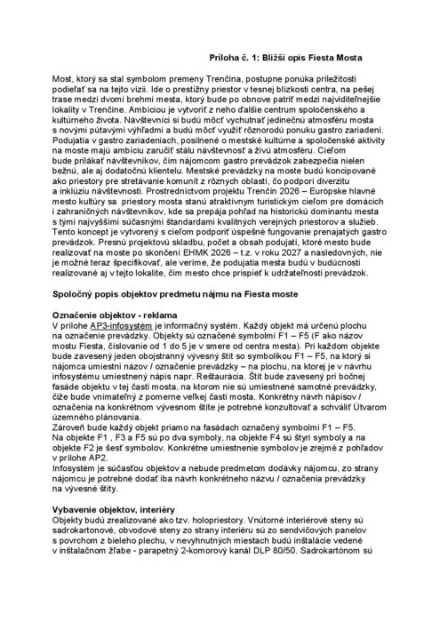 Hlavná stránka > Samospráva > Transparentný Trenčín > Predaj a prenájom majetku > Príloha č. 1 – Bližší opis Fiesta Mosta