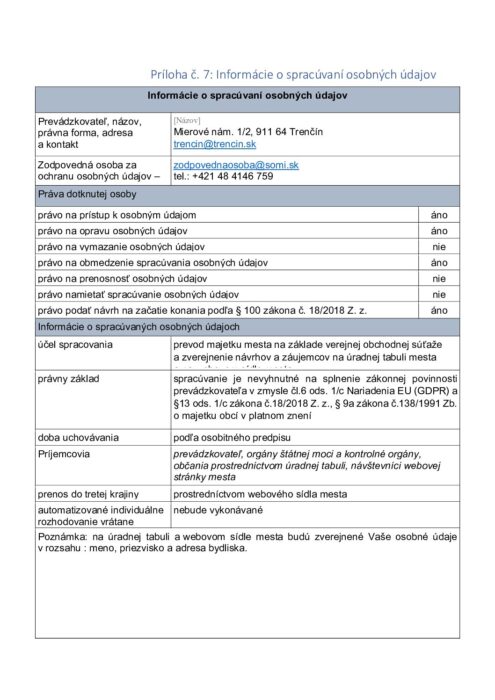 Príloha č. 7 – Informácia o spracúvaní osobných údajov