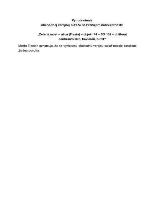 Hlavná stránka > Samospráva > Transparentný Trenčín > Predaj a prenájom majetku > Vyhodnotenie OVS – objekt F4-SO 132