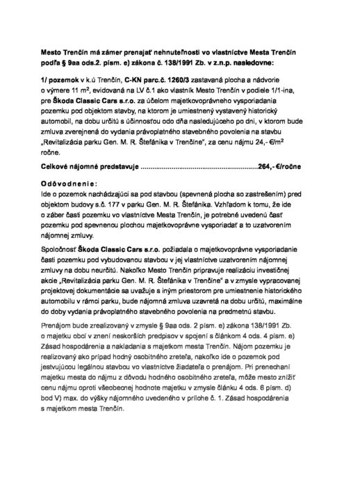 Hlavná stránka > Samospráva > Transparentný Trenčín > Predaj a prenájom majetku > Zámer prenajať nehnuteľný majetok