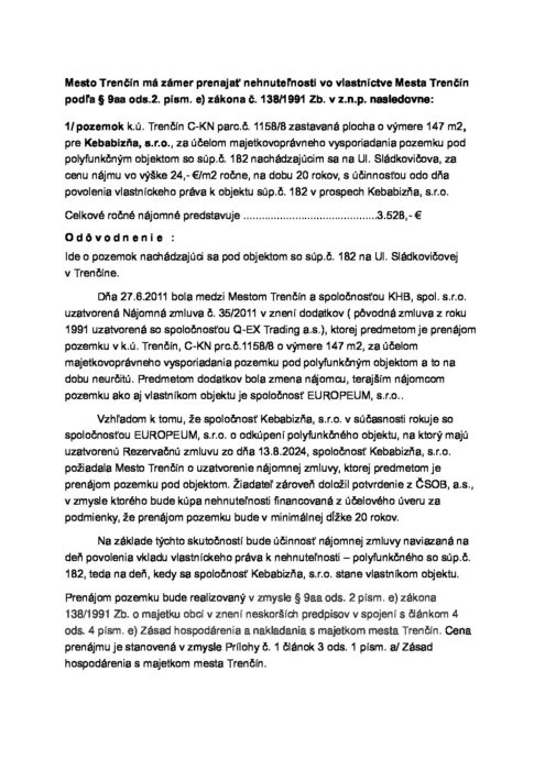 Hlavná stránka > Samospráva > Transparentný Trenčín > Predaj a prenájom majetku > Zámer prenajať nehnuteľný majetok
